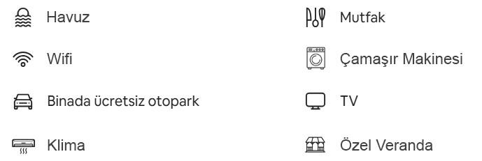 - 2 yatak odası (2 tane çift kişilik yatak)