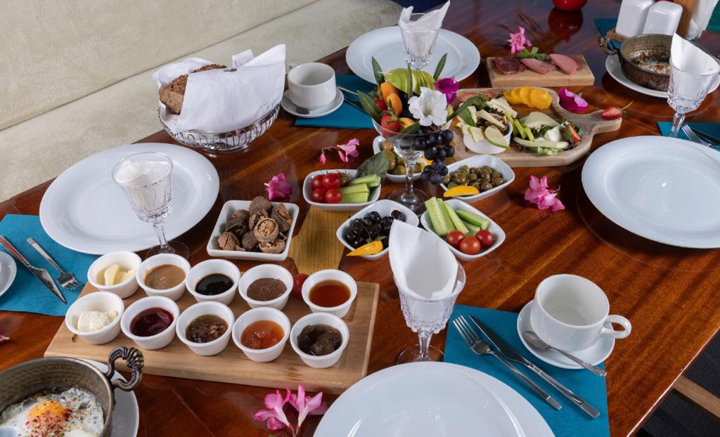 Toplamda 4 adet kabine sahiptir. Kabin mimarisi 1 adet master ve 2 double kabinden oluşmaktadır. Toplam 6 kişi konaklama kapasitesine sahip gulet de haftalık kiralama zorunluluğu yoktur.