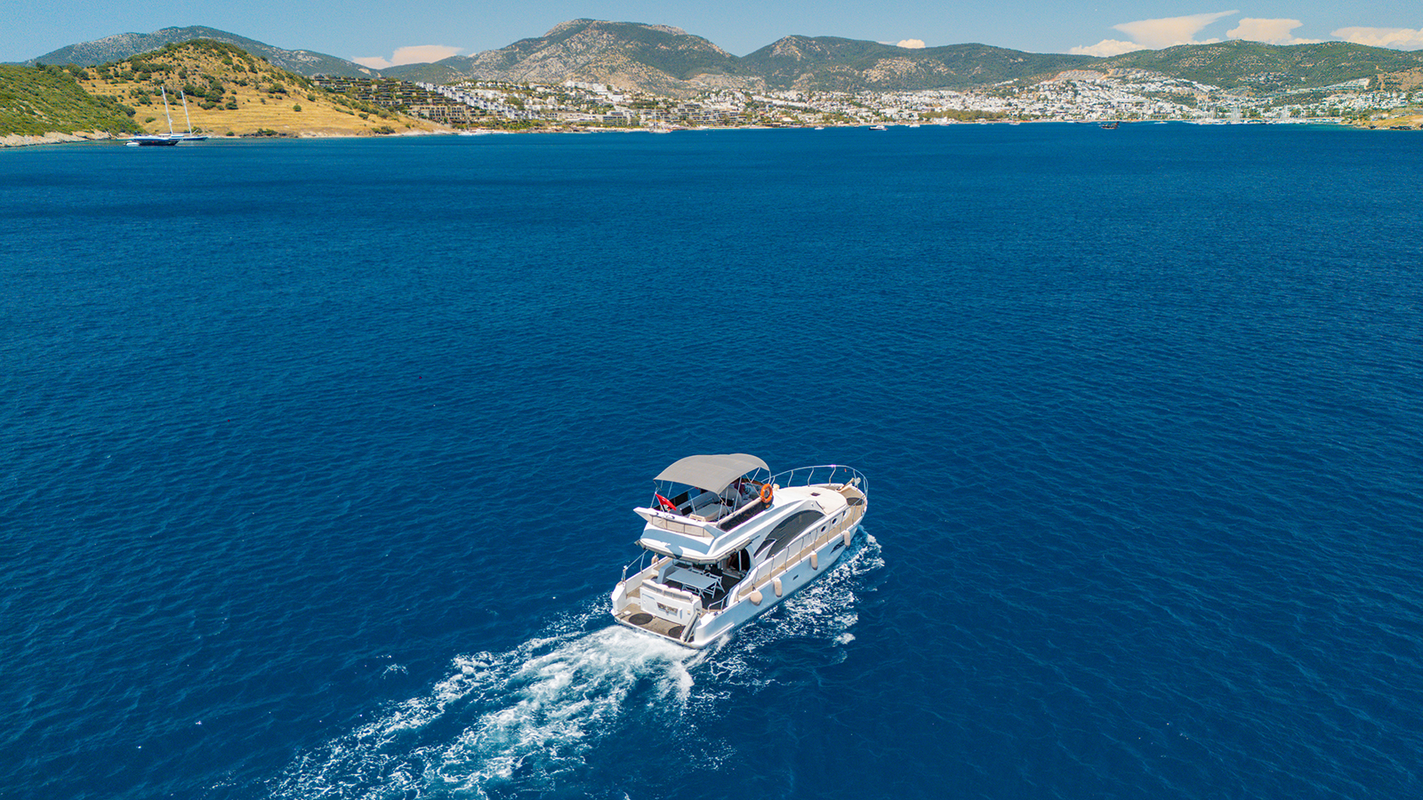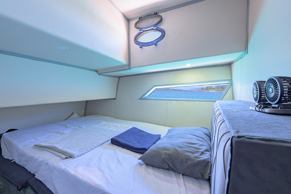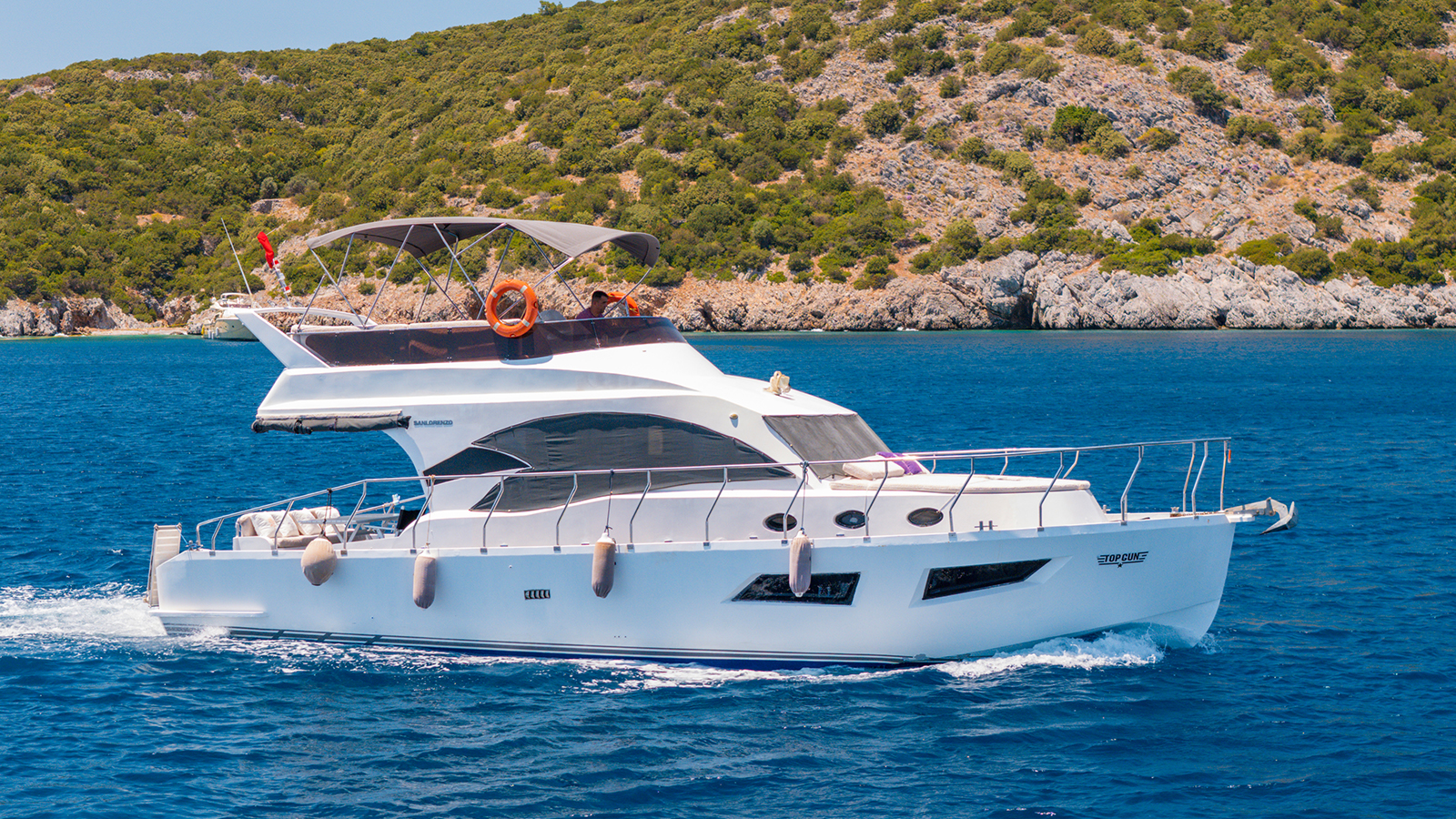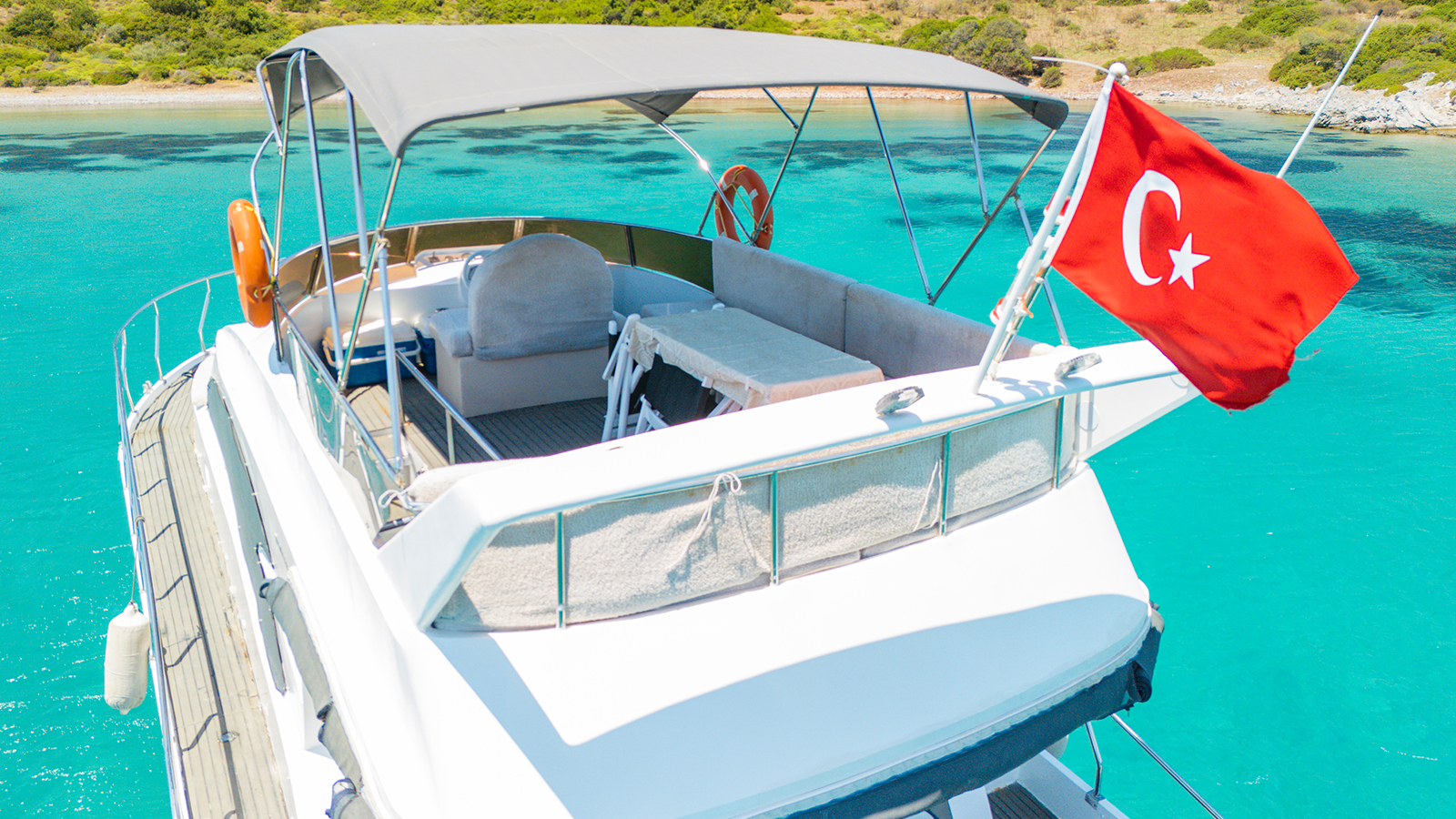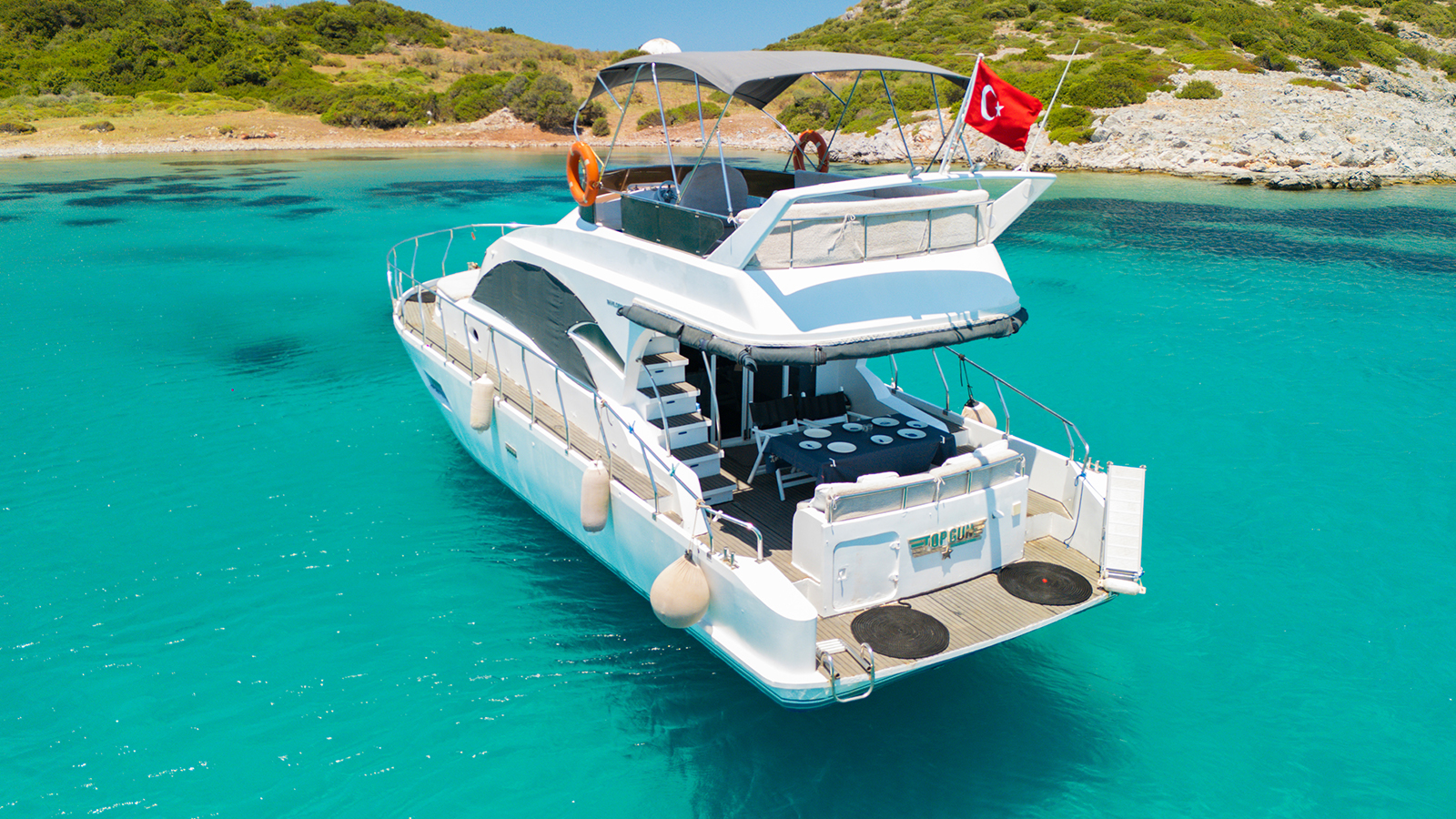 20 m., 1 master kabin, 3 double bed kabin. Aşçı, Garson, Kaptan. Teknede klima, buz makiması, su yapıcı, jeneratör vs herşey mevcuttur.