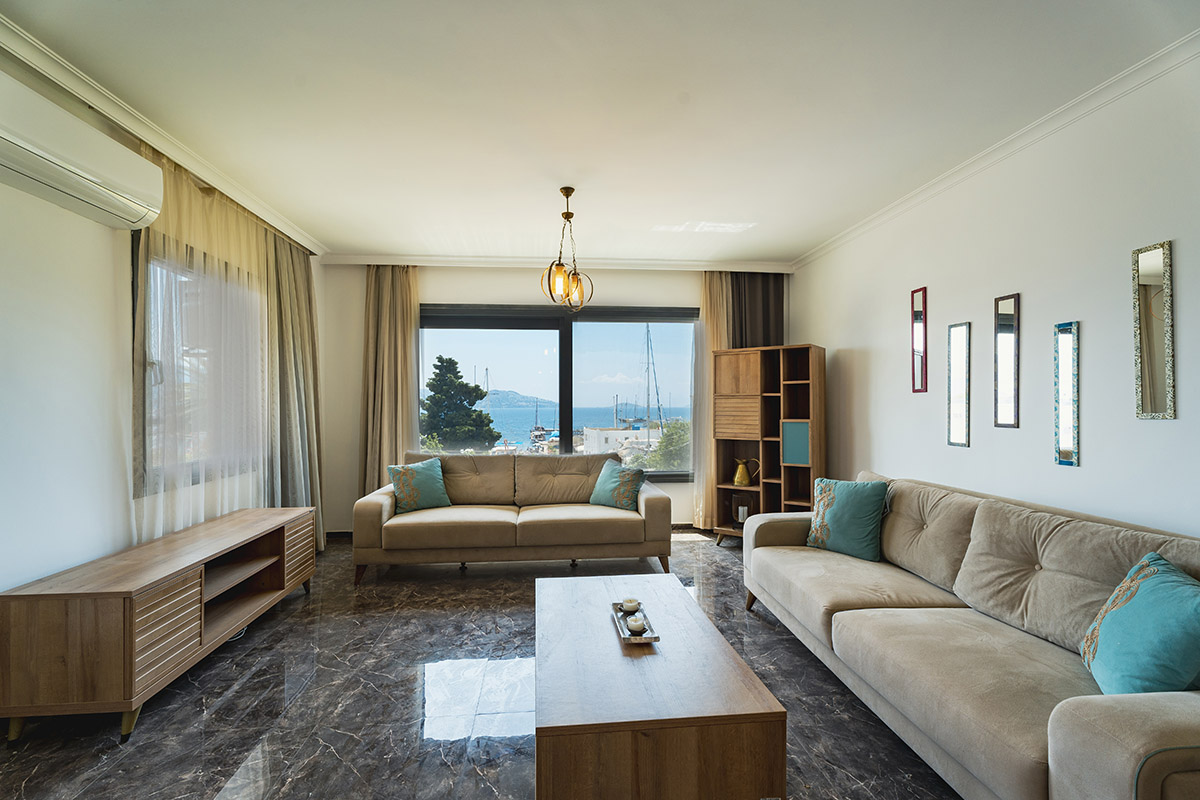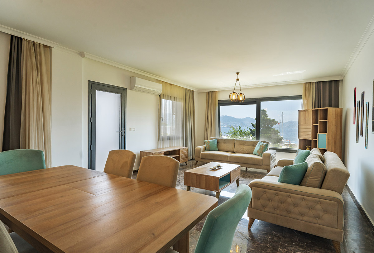 1 YATAK ODASI 1 SALON 1 AÇIK MUTFAK GENİŞ BAHÇE HER İKİ TARAFTAN DENİZE SIFIR MÜŞTEREK HAVUZ